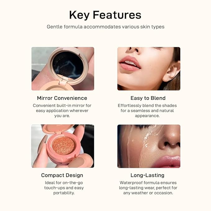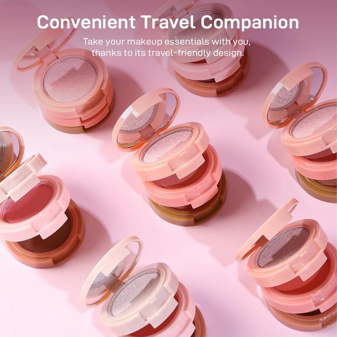 Apply with your fingers or a makeup brush. Use each color individually or mix them for custom effects. This palette can serve as blush, eyeshadow, highlighter, or bronzer, enhancing your entire face.
